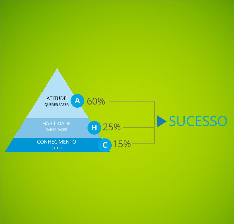 Ele explica que podemos enxergar o CHA como uma pirâmide, onde o conhecimento é a base, as habilidades estão no meio e a atitude, no topo. “Eu acredito que o conhecimento de fato é essencial, mas se a pessoa não desenvolver habilidades e não possuir atitude, ela não sai do lugar.”